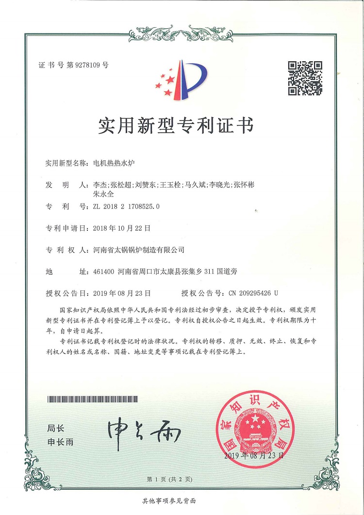 • 電機熱熱水爐專利